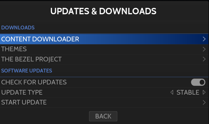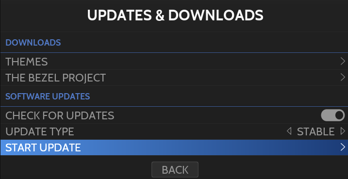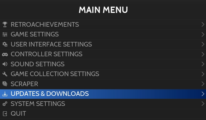 To perform the update, open the main menu and select UPDATES & DOWNLOADS