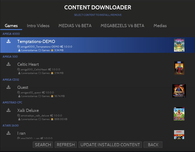The integrated Content Downloader can be used to install a wide variety of freely distributed games, themes, and additional Medias.