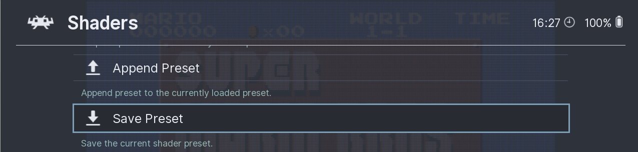 In order to save a Shaders override file,open the RetroArch quick menu by pressing SELECT +