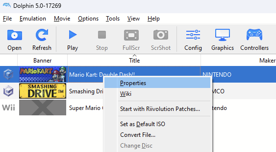 In the game list, right-click on the game to which you want to apply the specific profile and select "Properties"