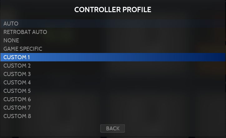 RetroBat provides 8 custom profiles as well as the ability to use a per_game cfg file.