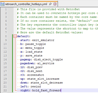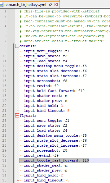 In addition, it is also possible to perform a specific hotkey mapping for a single retroarch core, in this example, the mapping is different between the flycast core, by using toggle instead of hold for fast forward: