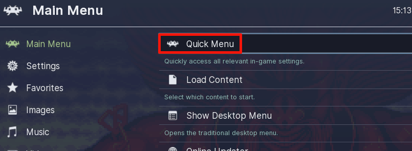 buttons simultaneously to open the RetroArch menu, and select Quick Menu: