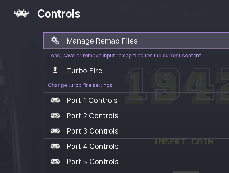 Once the mapping is performed, exit and go back to the CONTROLS menu, then select the "Manage Remap Files" option: