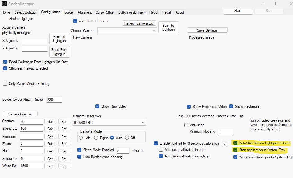 Il est important de s'assurer que le logiciel Sinden est configuré pour démarrer automatiquement :