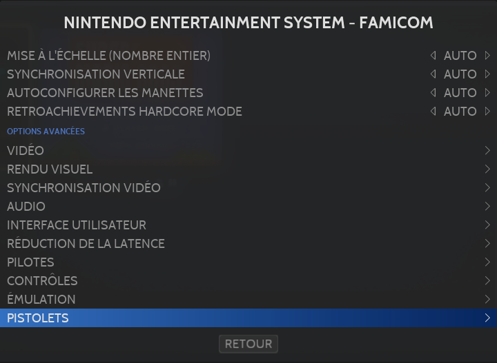 Le même paramétrage peut être effectué individuellement pour un jeu dans le menu Options du Jeu puis CONFIGURATION AVANCÉE DU JEU.