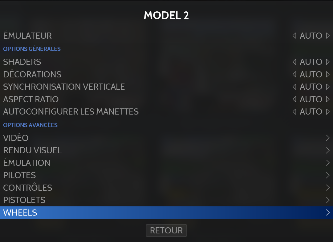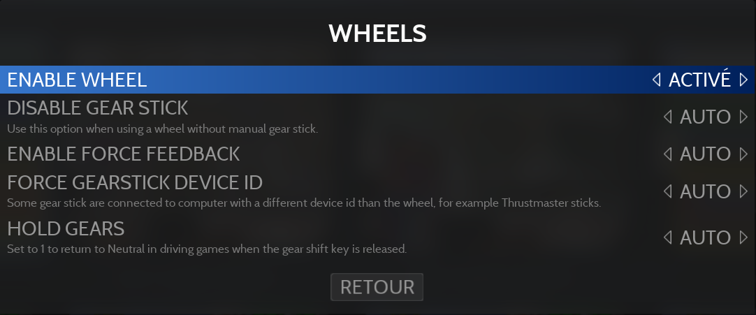 RetroBat ne permet pas de jouer au volant sans pédalier, il est nécessaire d'avoir les deux périphériques connectés lorsque vous activez l'option "wheels".