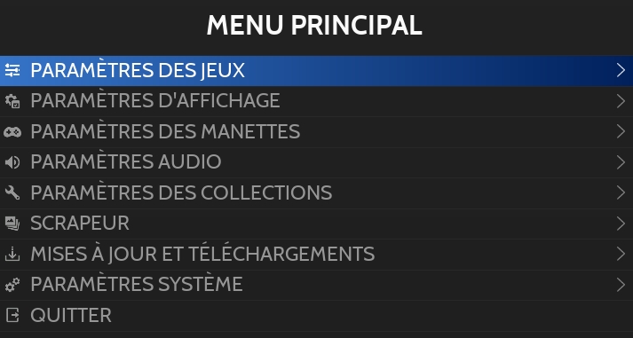 Paramètres généraux relatifs à la Vue Jeux (Jeux favoris en haut de la liste, icônes manuels et pays, afficher les noms de fichiers au lieu des noms scrapés...)