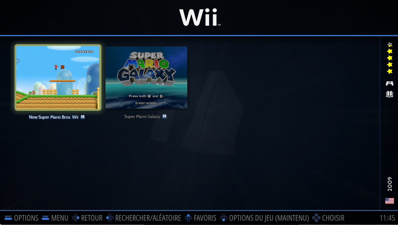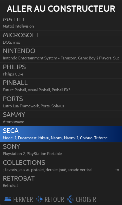 Pour accéder à la Vue Jeux, choisir un système depuis la Vue Système et appuyer sur le bouton
