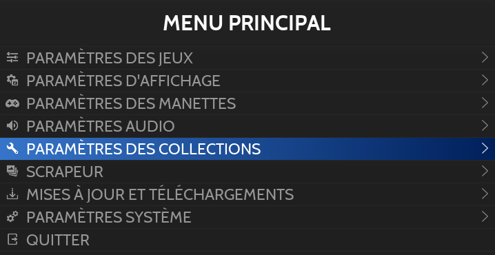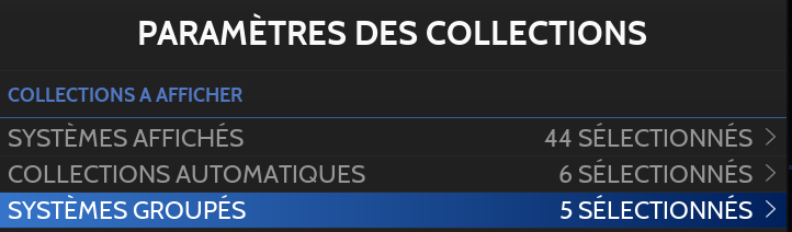 Il est possible de dégrouper les systèmes à partir du MENU PRINCIPAL en sélectionnant PARAMÈTRES DES COLLECTIONS