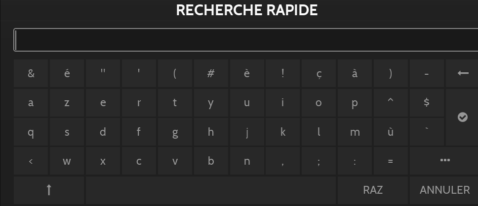 Le menu de recherche rapide est disponible en appuyant sur