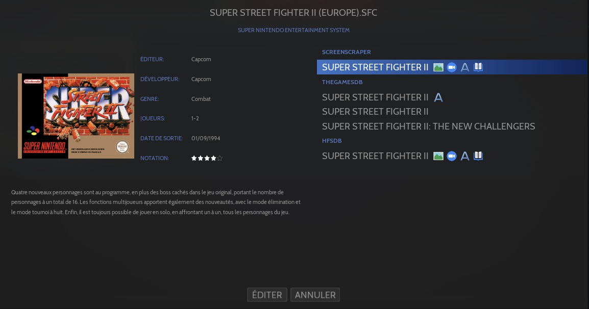 Une liste des jeux pouvant correspondre est proposée, sélectionner le jeu et confirmer avec le bouton