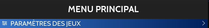 Appuyer sur START (ENTREE sur un clavier) pour afficher le Menu Principal et choisir PARAMETRES DES JEUX.