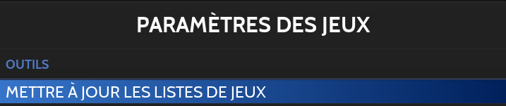Sélectionner METTRE A JOUR LES LISTES DE JEUX.