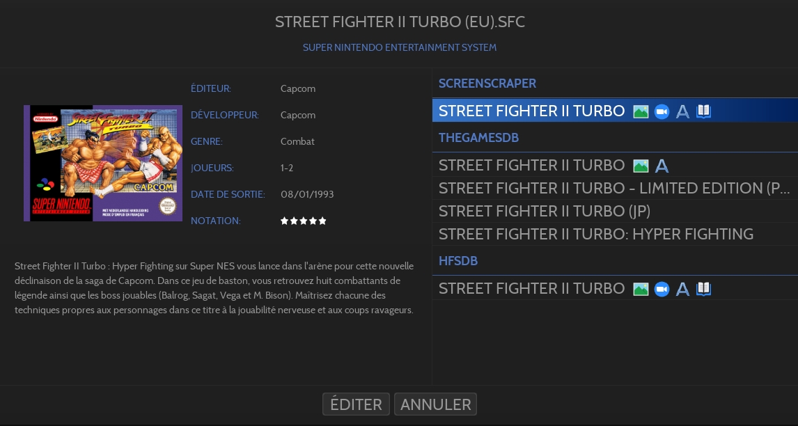 Une liste des jeux pouvant correspondre est proposée, sélectionner le jeu et confirmer avec le bouton .