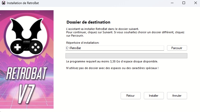 Attention: un dossier d'installation trop long (ou dans trop de sous-dossiers) peut poser des problèmes pour certains émulateurs comme libretro:mame.