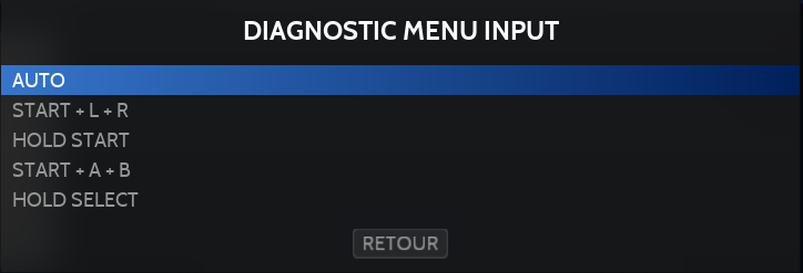 L'accès au menu diagnostique se fait en pressant simultanément START + L1 + R1 en cours de jeu.