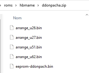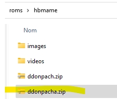 Placer le zip que vous possédez (jeu + hacks) dans le dossier \roms\hbmame