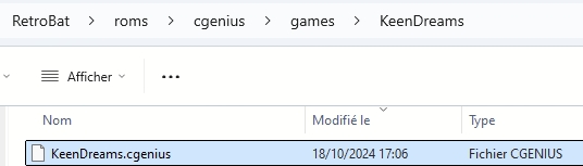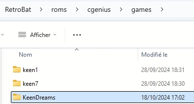 Copier/coller le dernier dossier (KeenDreams dans l'exemple) vers le dossier roms\cgenius\games: