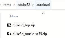 Pour utiliser les extensions d'eduke32 comme les packs de textures HD ou les packs de sons, il faut placer les fichiers additionnels dans le répertoire \roms\eduke32\autoload