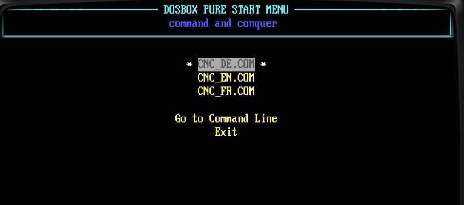 Le premier écran affiché lors du lancement d'un jeu avec DOSBOX permet de sélectionner l'exécutable à utiliser pour lancer le jeu. Cet écran est navigable avec une manette. Il est possible de définir un exécutable par défaut en appuyant sur la croix directionnel DROITE, permettant ainsi d'éviter cet écran lors de la prochaine exécution du jeu.