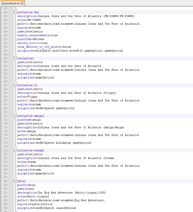 NB: les short ID de chaque jeu installé dans scummvm peuvent être consultées dans le fichier scummvm.ini, ce fichier est situé dans les dossiers: