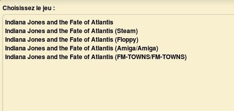 SCUMMVM permet de gérer différentes versions d'un jeu, cela est particluièrement pour les jeux édités sur plusieurs machine (FM-Towns, DOS, Amiga...).