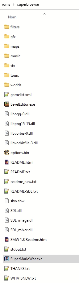 Puis décompresser le fichier zip à l'interieur du dossier \roms\superbroswar
