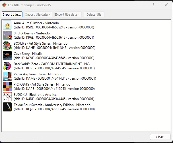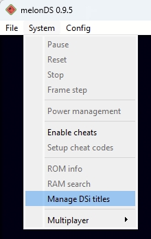 Seul l'émulateur melonDS permet de modifier un fichier "nand" en ajoutant ou supprimant des jeux, pour cela, procéder comme suit