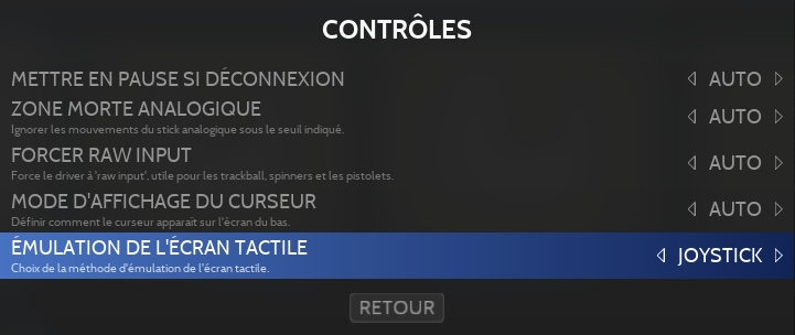En dehors de l'émulateur standalone MelonDS, tous les émulateurs permettent de simuler l'écran tactile avec le joystick droit, cette option doit être activée dans les options avancées du système > contrôles: