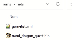 Pour cela, il est nécessaire de disposer d'un fichier "nand" de la console et de déposer ce fichier '.bin' dans le dossier roms\nds