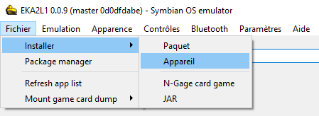 Les jeux symbian doivent au préalable être installés dans l'émulateur EKA2L1.