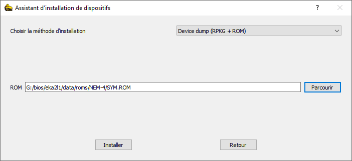Naviguez jusqu'a l'emplacement du fichier SYM.ROM qui doit être placé dans le dossier \bios\eka2l1\data\roms\NEM-4 de votre installation RetroBat :