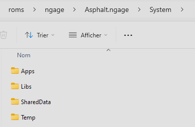 Voici un exemple d'un dossier de jeu tel qu'il doit se présenter dans le dossier \roms\ngage de votre installation RetroBat :
