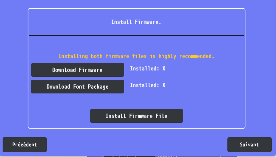 Télécharger aussi bien le Firmware et le Font Package depuis le site de Sony et installer les à l'aide du bouton INSTALL FIRMWARE FILE :