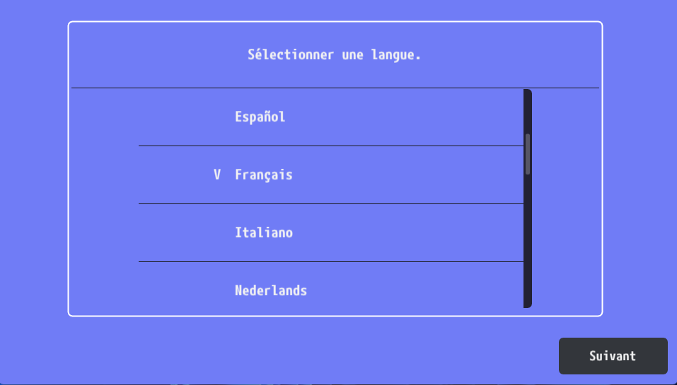 Au premier démarrage, l'émulateur a besoin d'être paramétré, la première étape est de choisir la langue :