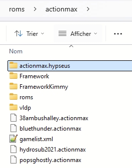 Le dossier de jeux actionmax doit être placé dans le dossier roms\actionmax\actionmax.hypseus