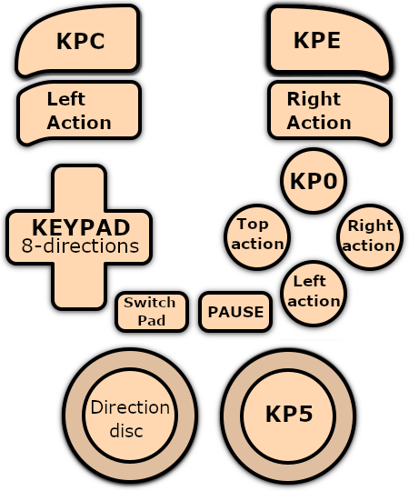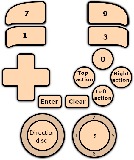 | Stick analogique droit                                                                                                                                                                                             | Keypad 1-9                 |