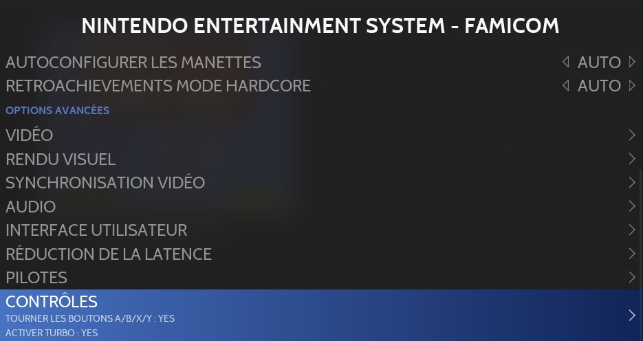 lr-fceumm : OUI lr-nestopia : OUI lr-mesen : OUI Mednafen : NON Mesen : NON Ares : NON BizHawk : NON Jgenesis: NON