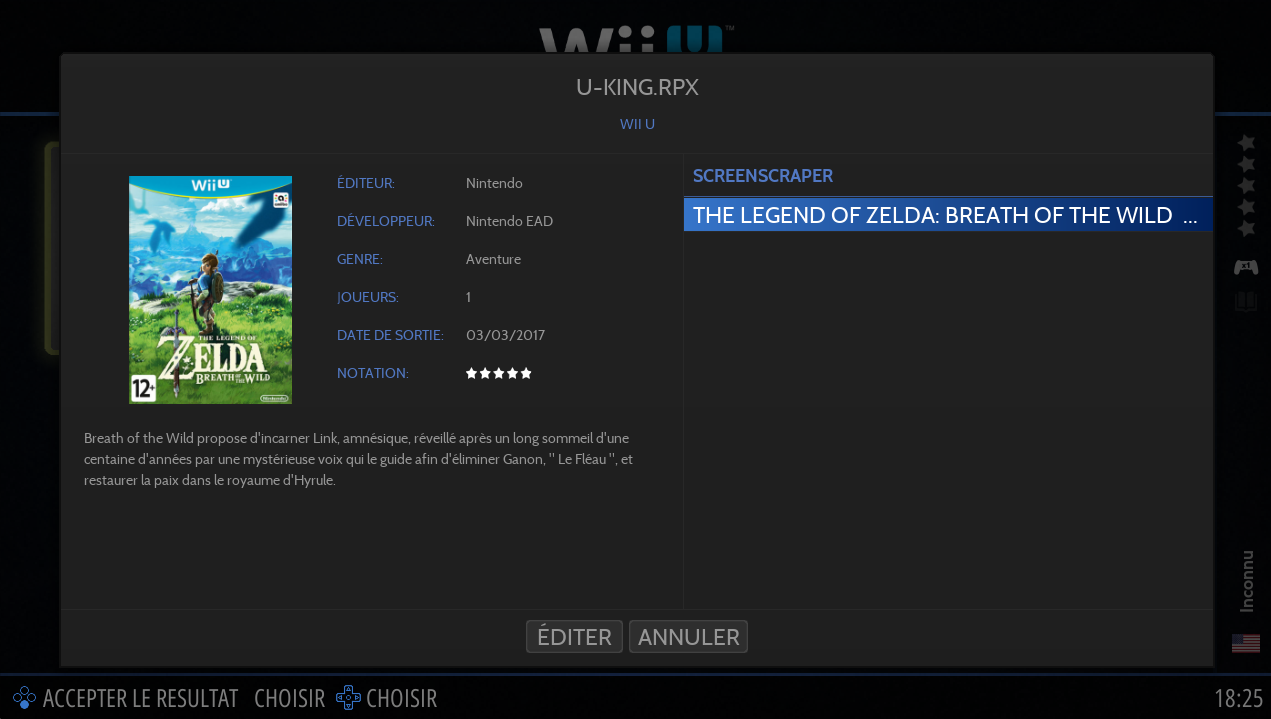 Screenscraper reconnaît automatiquement U-King comme étant le jeu Zelda Breath of the Wild