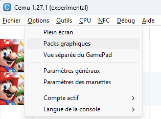 Ouvrir CEMU et sélectionner "Options > Packs graphiques":