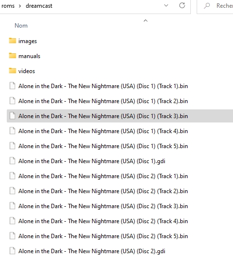 Retrobat détecte le fichier m3u et masque automatiquement les fichiers individuels .gdi de la liste des jeux.