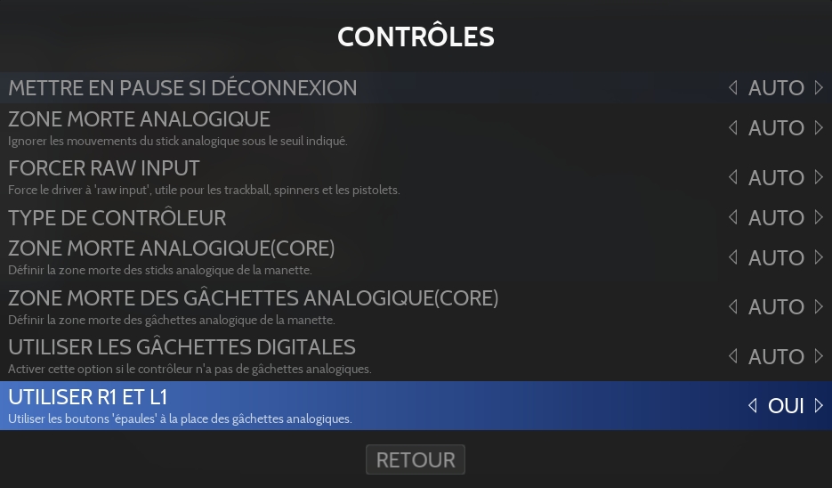 Il est possible d'utiliser les boutons "épaules" pour L et R au lieu des gâchettes: