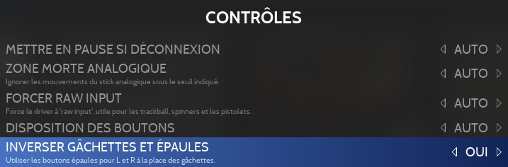 Il est possible d'inverser les gâchettes et les boutons L/R avec l'option suivante: