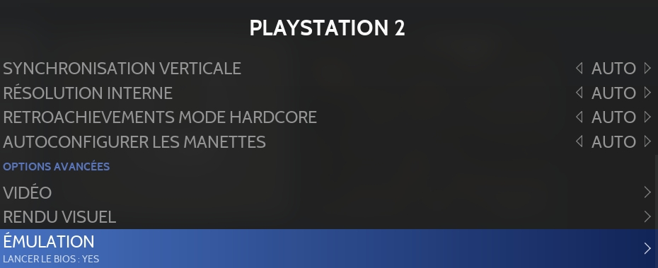 Pcsx2 : OUI Pcsx2-16 : NON Play : OUI lr-pcsx2 : OUI
