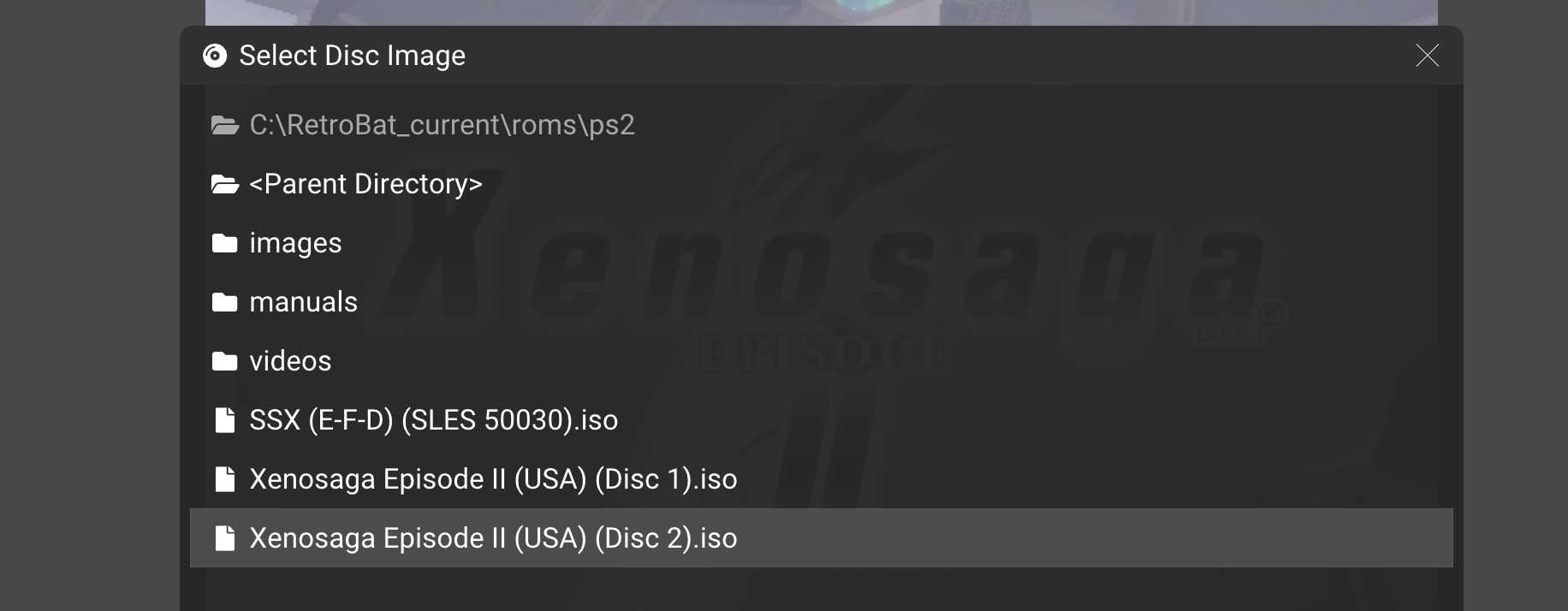 PCSX2 ne supporte pas l'utilisation de fichiers m3u pour les jeux multi-disques.