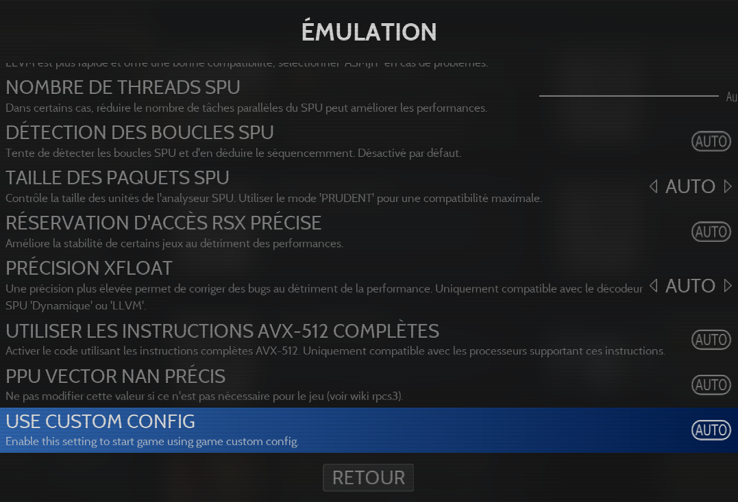 Utiliser les configurations par jeu de l'émulateur