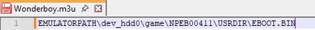 Le fichier m3u doit pointer vers le fichier EBOOT.BIN se trouvant dans le dossier du jeu dans le répertoire \saves\ps3\rpcs3\dev_hdd0\game