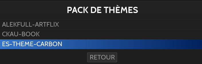 Naviguer parmi les thèmes disponibles à l'aide des touches HAUT et BAS, appuyer sur la touche