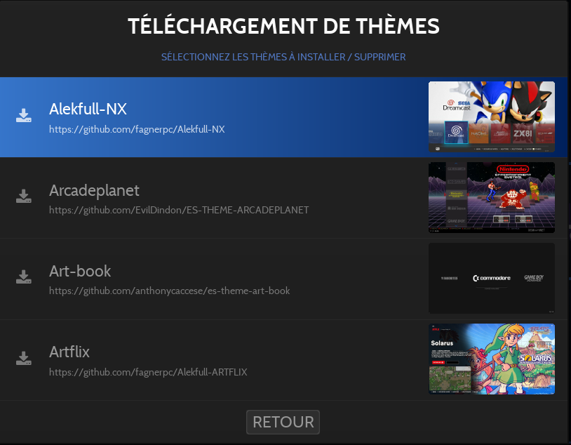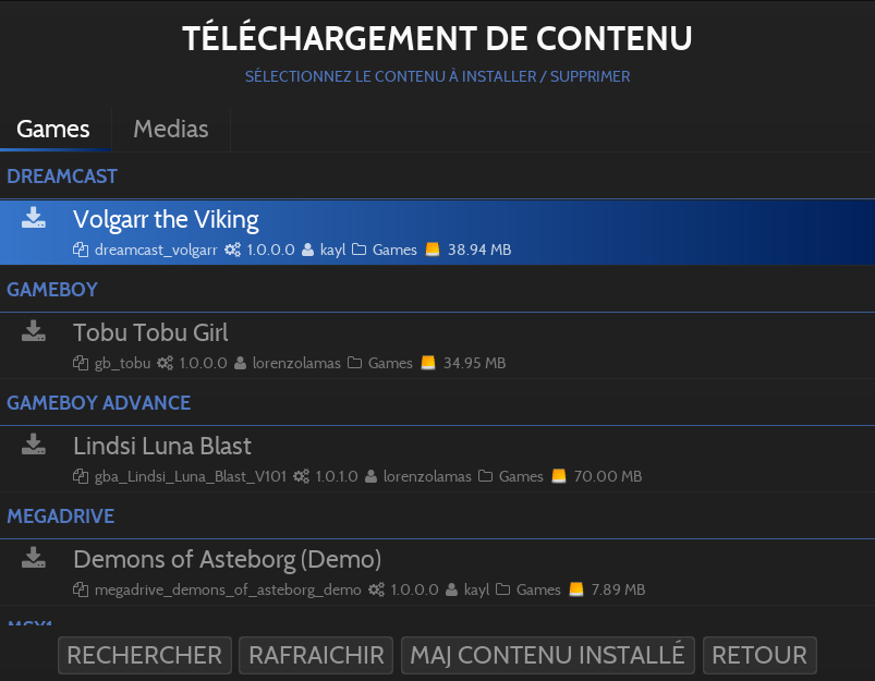 Le contenu téléchargé est directement chargé au bon endroit et utilisable dans Retrobat.